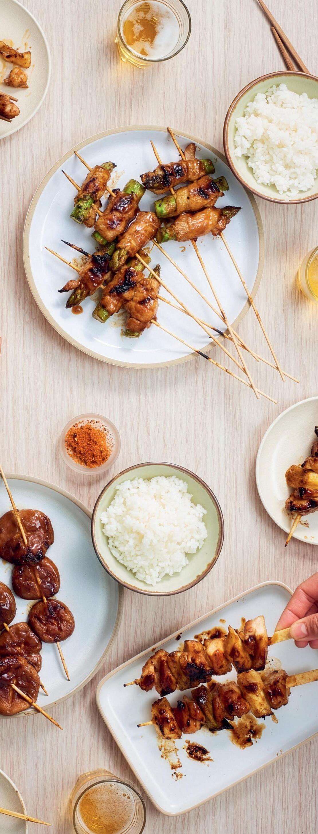 Découvrez les yakitoris, ces savoureuses petites brochettes qui sont une institution au Japon, mais aussi les teppanyaki, grillades japonaises, et une multitude d’autres recettes à préparer à la plancha, au barbecue ou au four.