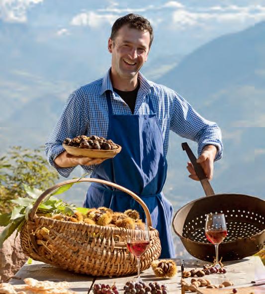 Der Herbst in Südtirol hat seinen ganz eigenen Charakter: Die Wälder leuchten in warmen Tönen – Gold, Rot, Orange und Braun –, und die klare Luft lässt die Landschaft besonders intensiv wirken. Mit dem Rückzug der Natur beginnt die Saison der Edelkastanie. In vielen Südtiroler Gemeinden prägen jahrhundertealte Kastanienhaine das Landschaftsbild. Manche Bäume sind über 500 Jahre alt. Sobald sie im Herbst ihre edlen Früchte abwerfen, beginnt eine Zeit der Kulinarik und der Geselligkeit. Auch in diesem