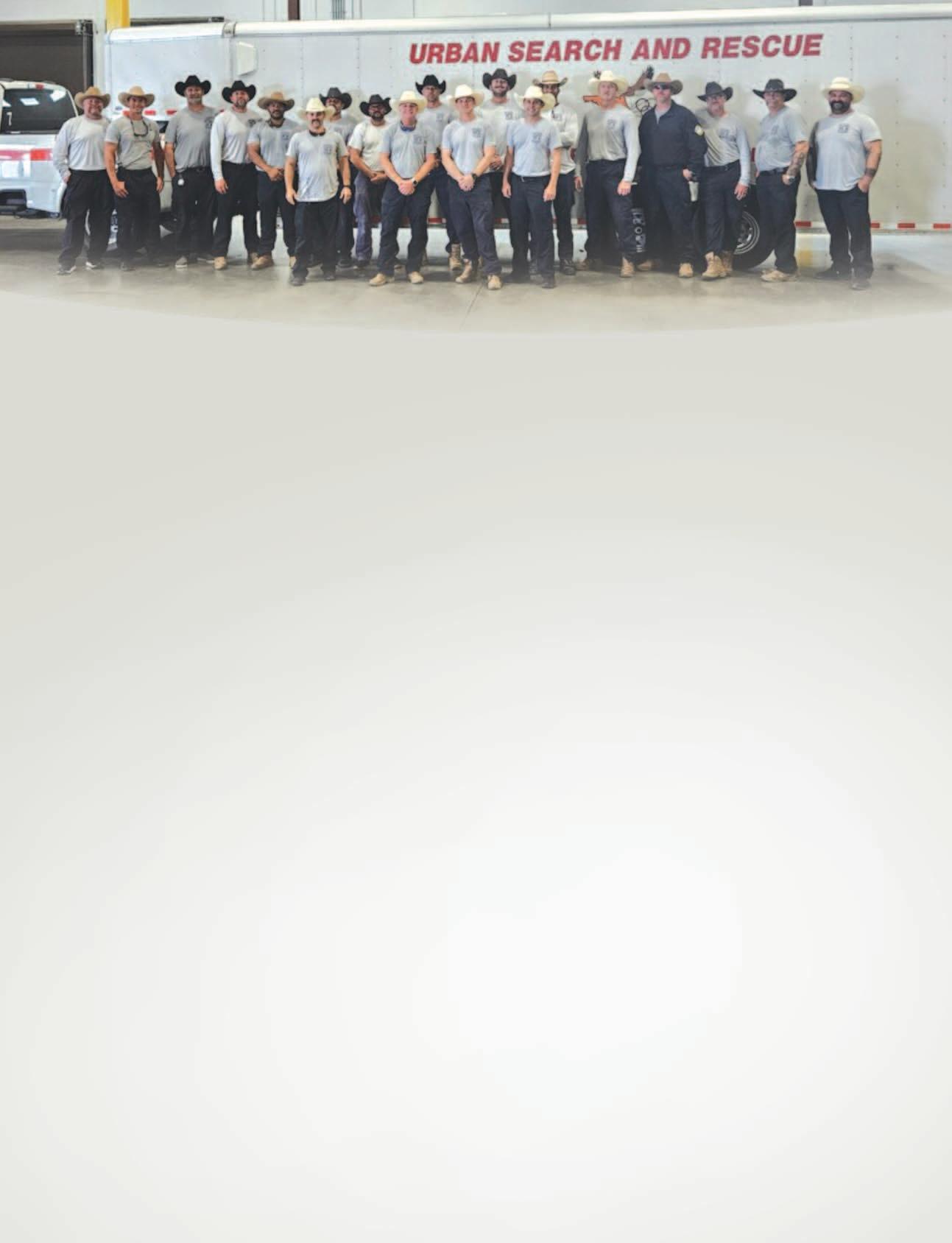 floods. The Swift Water element of the team deployed a day earlier, on July 7. The teams returned two weeks later on July 22 and July 23 after completing assignments in Travis County, bringing critical expertise and equipment to locate and rescue those impacted. The deployment included operations in the air, on the ground, and in