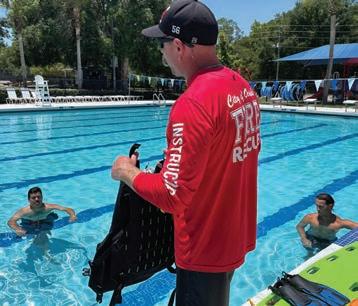 Firefighters from all three shifts took turns at Riverside Pool, located in Oviedo’s Riverside Park, training with floatation vests and the equipment on the vests, cutting seatbelts underwater, throwing rope lines, learning techniques on how to save drowning