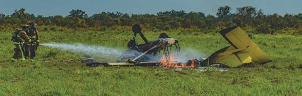 PCFR’s off-duty Drone 1 unit arrived first on scene with additional crews arriving minutes later After a quick assignment, the crews located two selfextricated occupants and an experimental aircraft engulfed in flames.