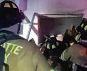 Halligan tool served as a step to climb through the narrow window, where crews found four occupants trapped inside. Simultaneous rescue efforts were underway in other areas of the home as an additional victim was located in a converted garage that had been turned into a bedroom. Using a thermal imaging camera and coordinated interior-exterior efforts, crews breached the garage door to remove another patient.