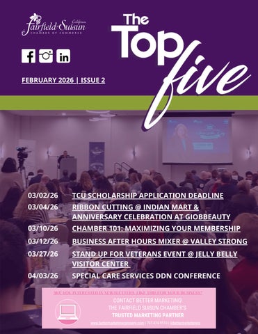 The Fairfield-Suisun Chamber of Commerce champions economic prosperity and quality of life for Solano County and surrounding regions by being the voice of business, promoting collaboration, and helping members grow.
