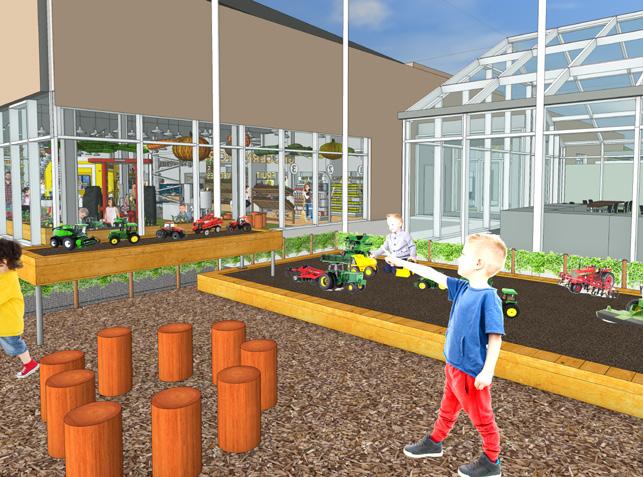 We invite our visitors to get to know agriculture by playing with it. One of the best parts of agriculture is being outside, so playing outside is an important part of how children and families explore agriculture at The Center. As visitors romp through giant rows of vegetables, tunnel through soil channels, and swing from an irrigator, they integrate mental and physical learning exploration for a wellrounded engagement with the joys of agriculture.