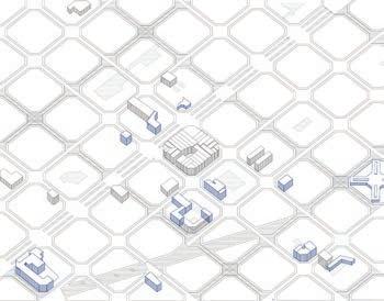 The agrosilvopastoralism node is located by the village’s primary water source, the river, where the soil is fertile. Fields in this node are created by extending lines perpendicular to the river from all other industrial nodes.