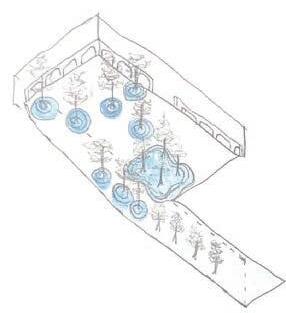 the adjacent garden attracted children and parents. Therefore, we propose an intervention that will invite parents to bring their children by adding a ramp element at the entrance to our site. Mirroring the arches underneath the ramp, we create a playful space for children to enjoy, ensuring our garden becomes a welcoming space for all.
