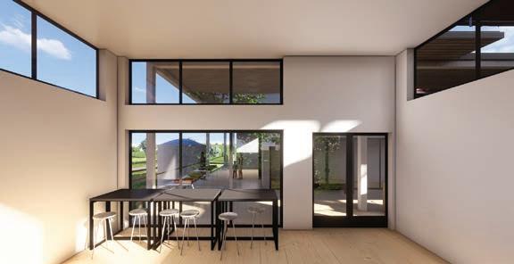 edit images and emails from her office, sunroom, or kitchen table. Sam lives alone in the shotgun-style home to the east of Rachel’s cottage. She works from home and benefits from ample natural light in his second-floor loft makerspace, which has skylights. Both homes are designed to meet the unique lighting and spatial requirements of the occupants, enhancing their creativity.