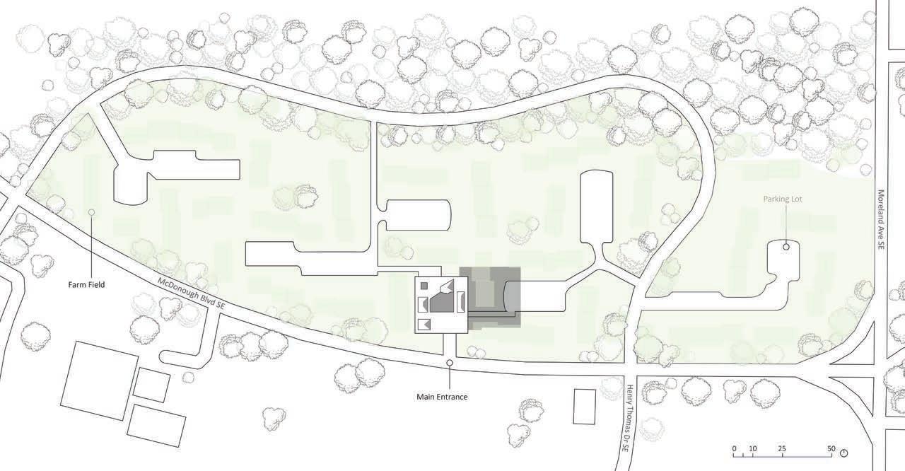 Located at the intersection of Moreland Ave SE and McDonough Blvd SE, Breaking the Cycle is a facility designed to help community members and re-entering citizens come together and break the harmful cycle of recidivism. The programmatic spaces are specifically designed for re-entering citizens, with housing for up to two years, as well as opportunities for employment on our farm, in shops, and at a marketplace where