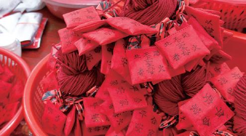 14 的靜動態美感,結合3D點雲、AR、VR 的科技介入,採用平行、縱深、俯仰角 度顯示全知觀點( Omniscience )的虛 擬化,完整表現元工藝( Meta-craft ) 如何展現寺廟是信仰、民俗、建築、工 藝、音樂、視覺、表演藝術的跨領域結 合,透由相互不斷的滲透、激盪、融攝 至重構,促使工藝(術)從一件作品, 擴展為一組哲學思想,一個倫理行動, 一個價值發現的過程,更展現對社會文 化議題的整體關照。在強調「以人為 本」、「師法自然」的永續環保綠色思 潮下,持續進行各種跨界的合作,以綠 工藝精神的自然、循環、平衡、寬容、 生命力作為實踐方法,創造利他的社會 價值,也為創作者和觀者鋪陳特殊的精 神場域體驗並創造自我療癒的機會,展 現當代工藝的新趨勢。 本次展覽亦透過元工藝前衛性思考 及技術應用,試圖以虛實、宏微、仰 俯、點線網絡的理解與多視角觀點的 延伸,呈現臺灣人敬天惜物、關懷人 文、秉持工藝精神的集體精神與常民 生命力。因信仰( Faith )而產生關係 (Relationship) ,藉由工藝(Craft )而建立 自然、社會及萬物間有機良善的生活、 生命和生態關係。寺廟就是一座工藝博 物館,一種人和人,人和神之間的訊息 傳遞形式或物質表現,具高度工藝性、 精神性、符號性、儀式性、公共性與社 會性,既古典又當代,向前接過去,向 後接未來,串聯一條時間的束線,是 民俗工藝( Faith Craft )也是社群工藝 (Community Craft)。 具符號性意義物件 人與神交換的信物 三角旗細部 林玉泉 香火袋 北港天后宮 周品均提供 平安發財米 車城福安宮 周品均提供 八卦香包 耕研居宗教民俗研究室收藏 天上聖母絭牌 楊蓮福收藏