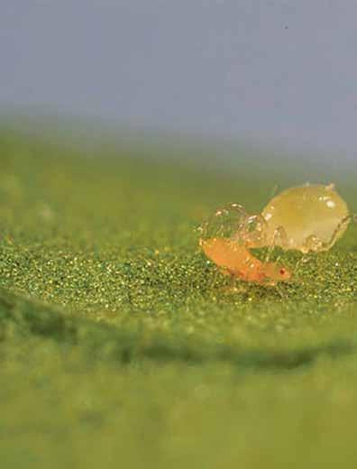 “Hablando de ácaros, nuestra mejor opción, Amblydromalus limonicus, no necesita polen. Se alimenta de Larvas L1 y L2 y también de huevos de parvispinus, tolera baja humedad y mantiene actividad depredadora durante el verano, colonizando el cultivo antes de floración.