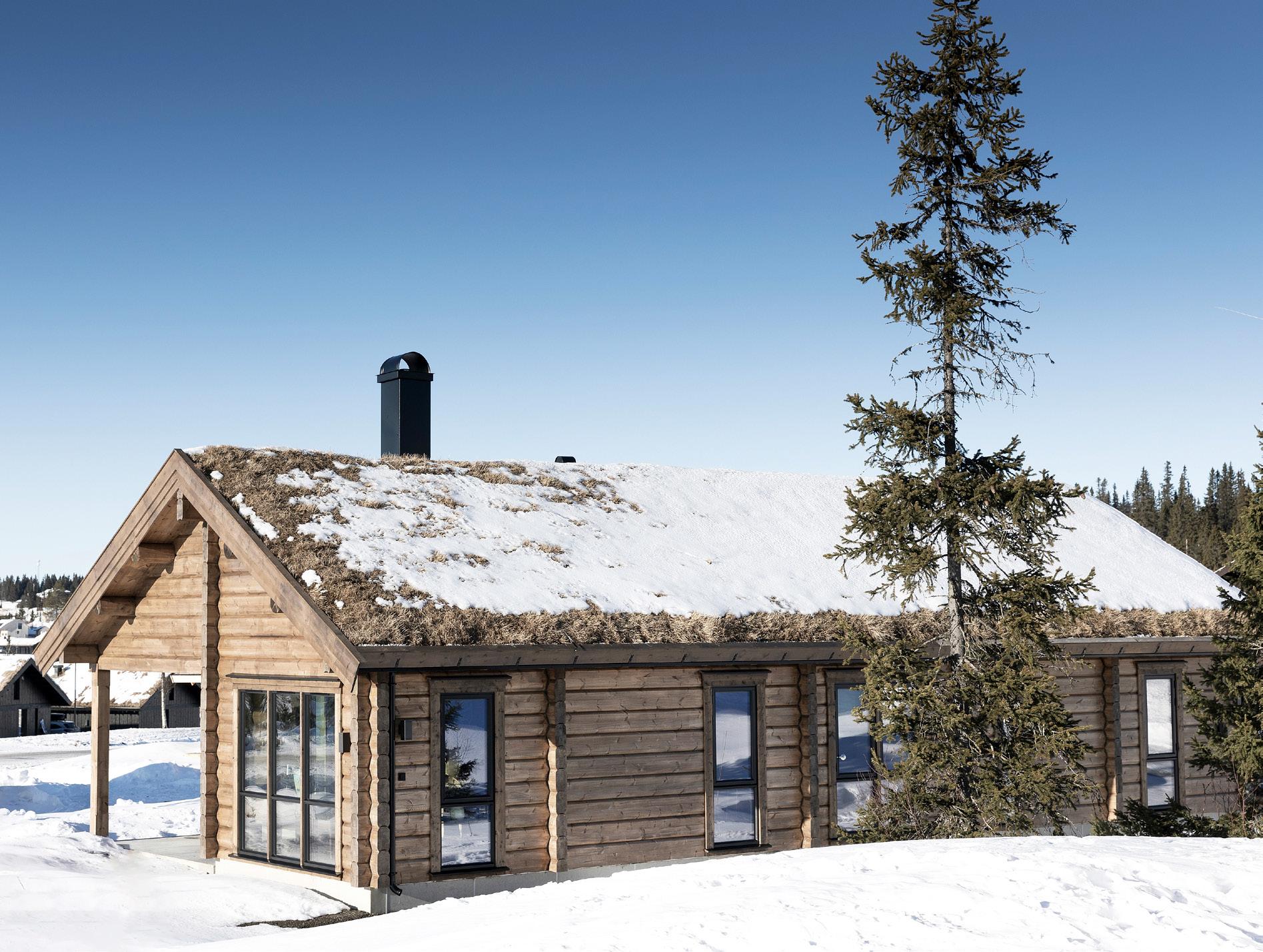 Teveldalshyttene er moderne hytter med to parallelle tømmerkasser med mellombygg. Mellombyggene rommer kjøkken og spiseplass og blir hyttas naturlige samlingspunkt.