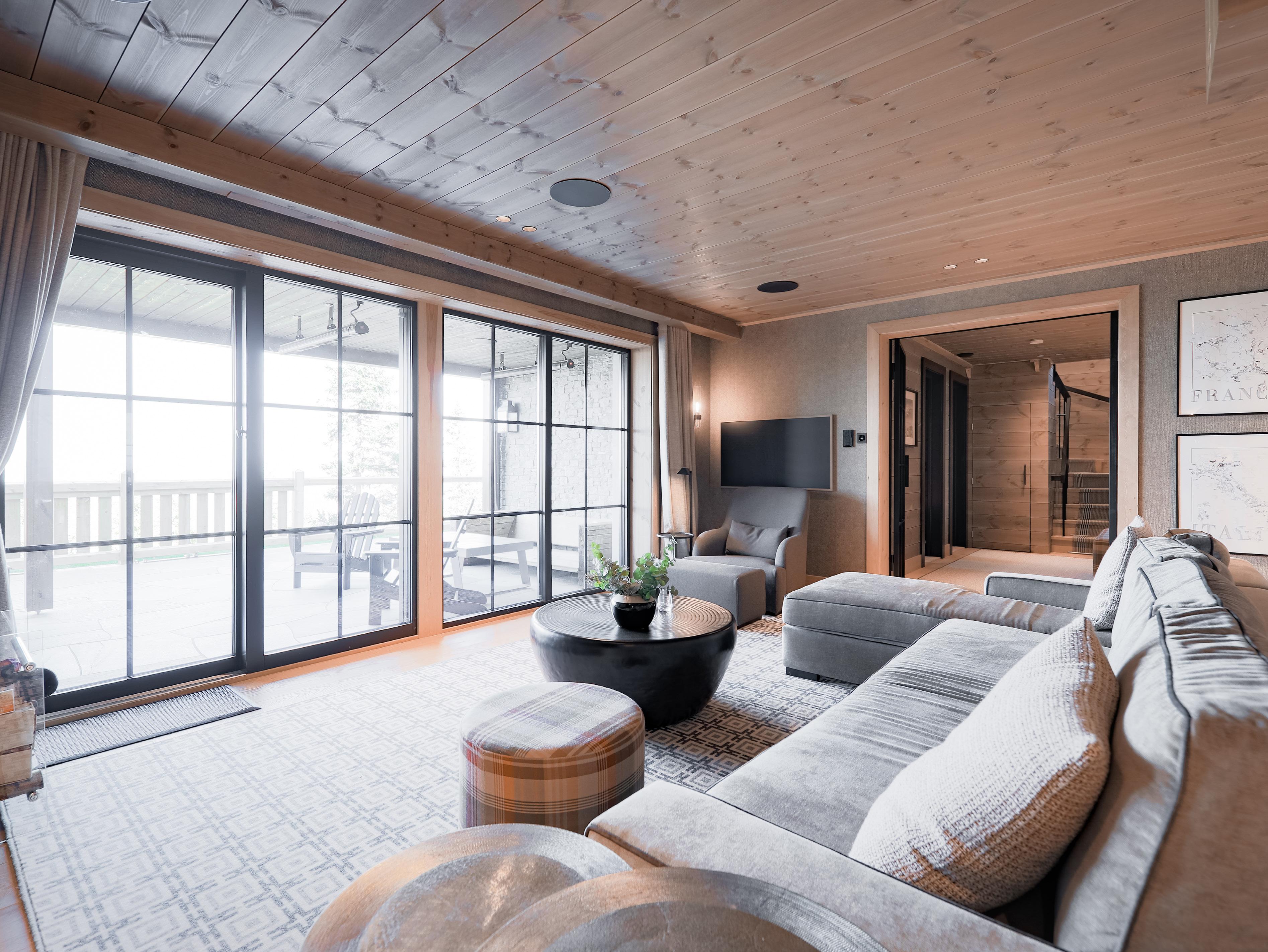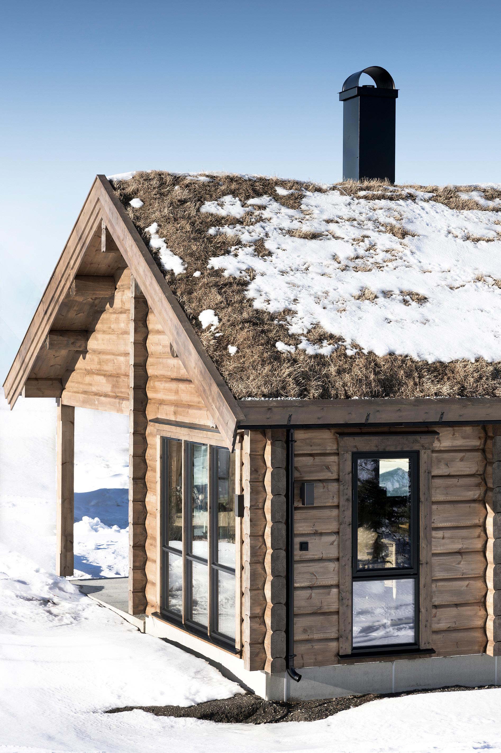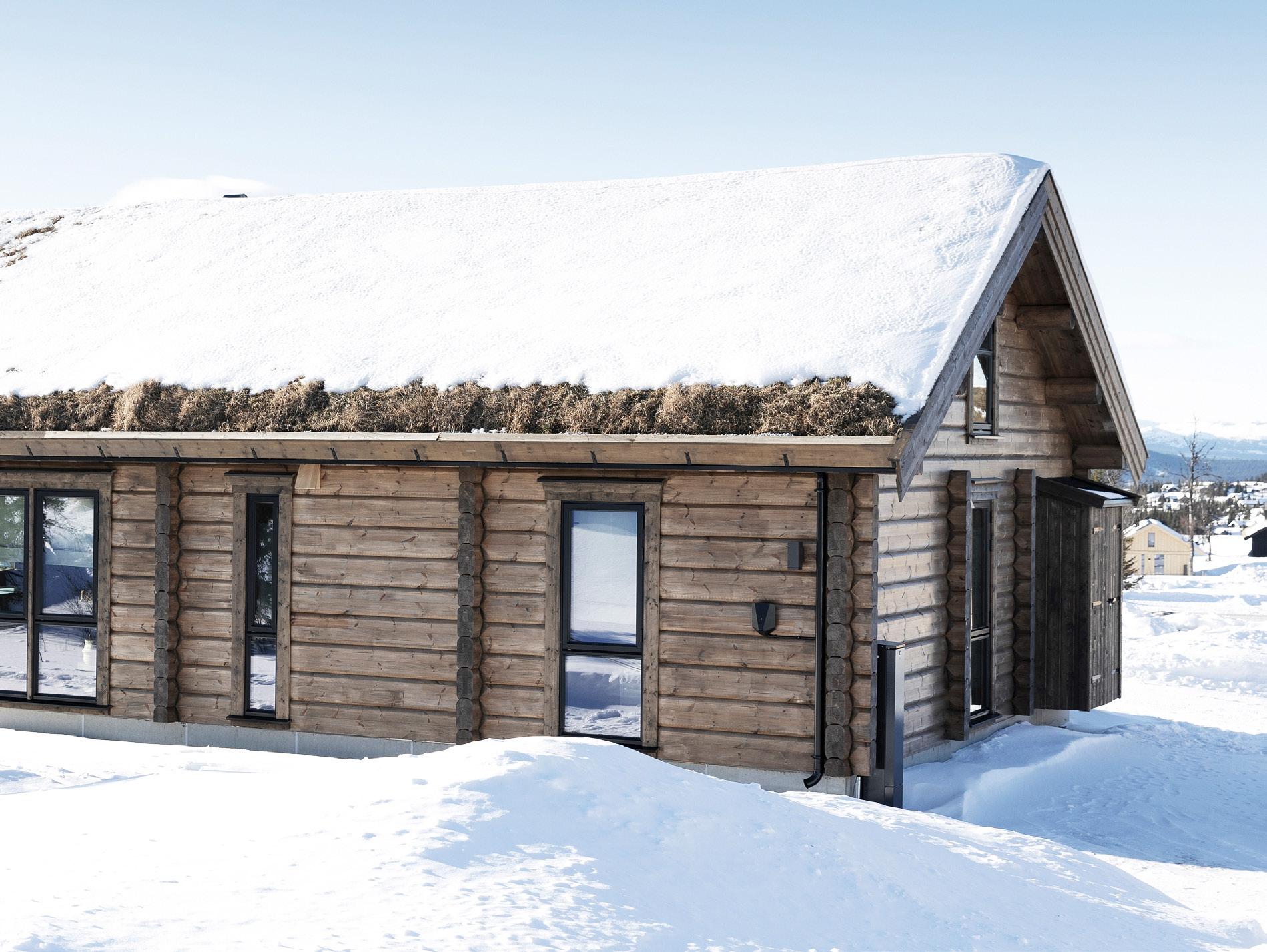 Med store flotte glassfasader inviterer hytten solen inn i stuen.