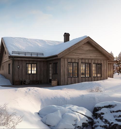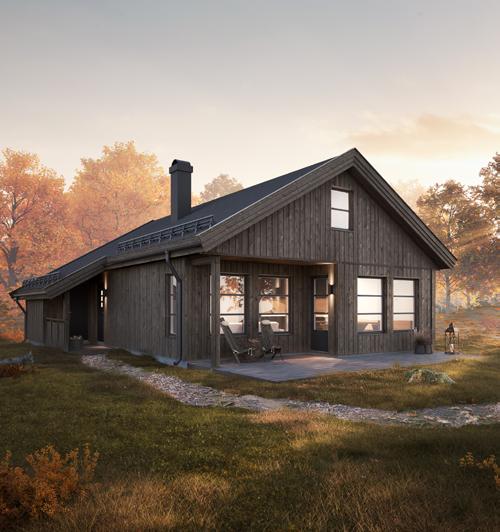 Vi har to typer stiler som kan kombineres. Disse har vi kalt Trend og Tradisjon. Trend har et stilrent uttrykk med stående låve skrå panel og store vindusflater med avtagbare sprosser. Tradisjon har et lunere uttrykk med villmarkspanel og smårutede vinduer, som også har avtagbare sprosser. Det er mulig å kombinere de ulike uttrykkene med f.eks Trend panel og Tradisjon vinduer. Man kan ha liggende panel, som gjør at hytten får det uttykket du ønsker, i tillegg endre utførelsen på taket.