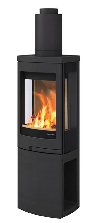 Med glass på 3 sider. Leveres med sort stålplate på gulv. Kan ikke plasseres i hjørnet.