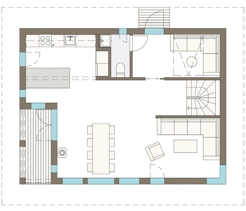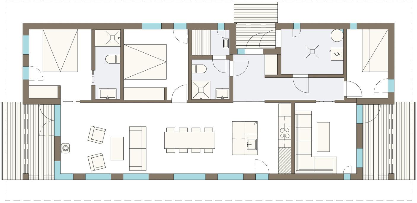 Det er mange elementer som spiller sammen for å få utnyttet rommene maksimalt og skape en hyggelig atmosfære: Store vinduer, bred panel, rause takutstikk, planløsninger, praktiske boder, innebygd skap. Hytta skal fungere optimalt for deg og dine.