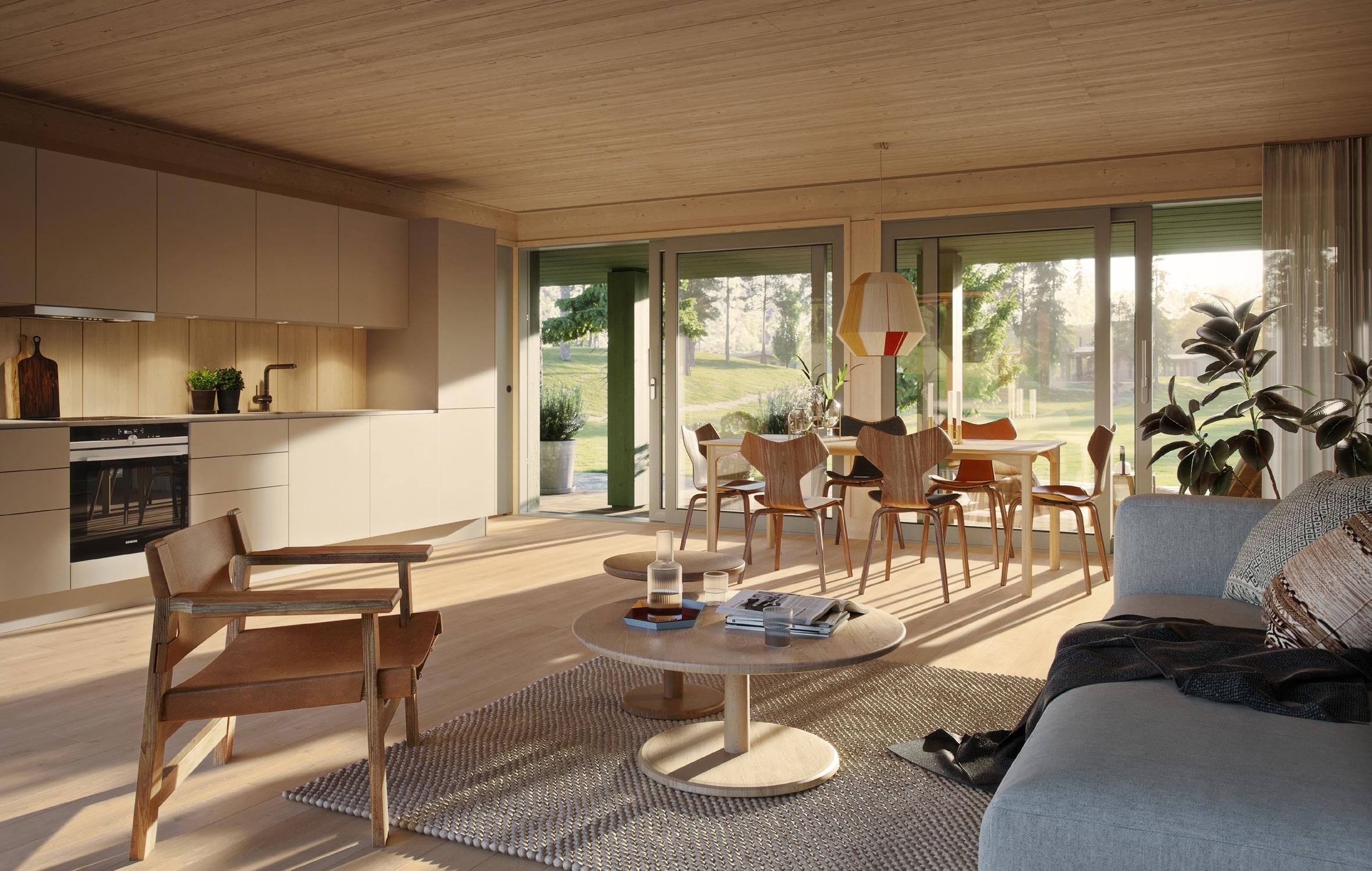 AS Arkitekter MNAL har vi skapt et helhetlig og tidløst uttrykk med hytteserien Vy, som