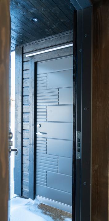 Fullisolert ytterdør med vindu leveres til entré. Boddør leveres fullisolert uten vindu med profil og dørvrider lik entrédør.