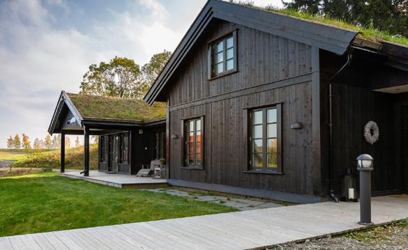 Ved rett design leveres hjørnekasser, stolper ved overbygget terrasse/inngangsparti og omramming rundt vinduer og dører i kraftig, slett utførelse.