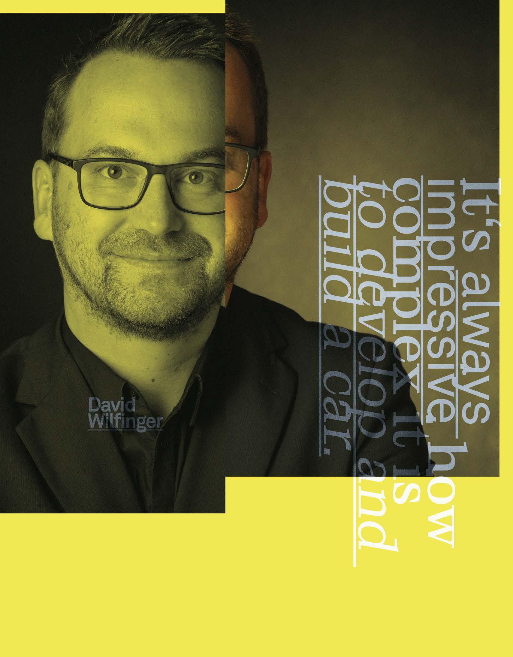 An sein Informationsdesign Studium hat David Wilfinger ein Doktoratsstudium in Salzburg angehängt. Ausschlaggebend für diese Entscheidung war ein Professor, der dort eine Forschungsgruppe zum T hema Human Interaction Design aufgebaut hatte. Heute leitet er eine ganze Abteilung zum Thema Digital Product Design bei der Mercedes-Benz AG in Sindelfingen und gestaltet Autos der Zukunft mit.