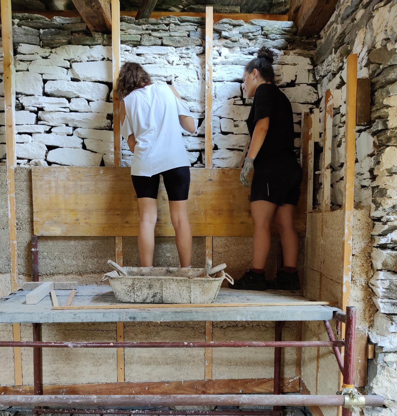 The second phase saw a “hands on” approach in the worksite. Here the team first completed the completion of the stone wall structure, subsequently the construction of the internal lime-hemp insulation and, finally, the construction of the collaborating screed in reinforced concrete.