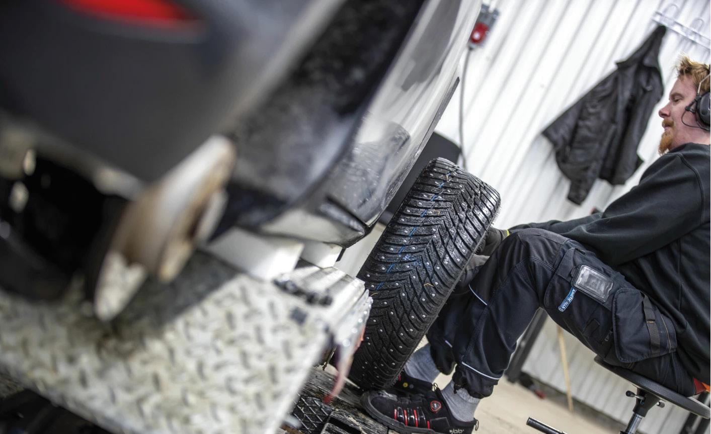 Síðastliðið vor voru skoðaðir eiginleikar dekkjanna á bæði blautu og þurru malbiki fyrir utan Tammerfors í Finnlandi. Einnig var lagt mat á veggný á stritóttum sveitavegum. Prófunin var gerð nákvæmlega með sama hætti og árið á undan. Það verður að segjast eins og er að Nokian, Michelin og Goodyear skáru sig úr í prófunum í negldum dekkjum. Þessir þrír dekkjaframleiðendur fá háa einkunn en með mismunandi eiginleika. Því er þess virði að kynna sér tölurnar ítarlega þannig að þú veljir dekk með bestu eiginleika á þeim vegum sem þú ekur oftast. Í næstu sætum koma líka áhugaverður kostir á borð við Falken og Hankook. Falken-dekkið þótti sérstaklega skara fram úr fyrir traust grip.