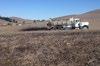 Robin Lynde of Meridian Jacobs spread composted manure and bedding from her barn over 6.5 acres with a manure spreader. Spreading compost on rangelands increases soil organic carbon levels, improves soil water infiltration, water and nutrient hold capacity, and forage production.