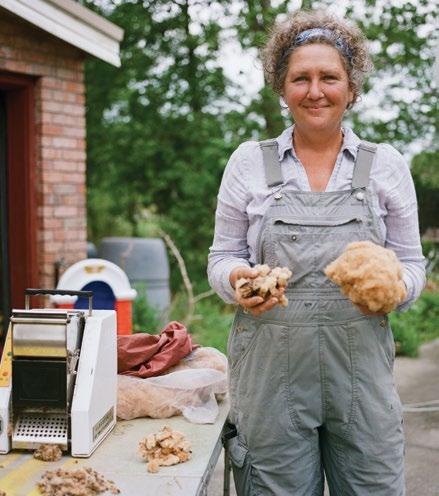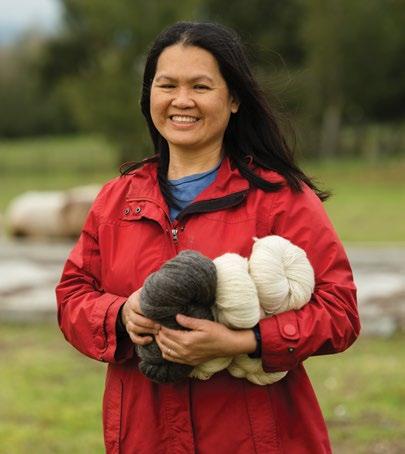 Purebred Romneys (white and recessivecolored) and black and white purebred Corriedales, as well as Cormo, Romney and Corriedale crosses. We have locally produced yarn, both natural-colored and hand-dyed with natural dyes.