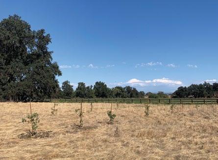 Molly Taylor of PT Ranch planted 125 fig, mulberry, valley oak, western red bud, and elderberry trees in a 1000’ hedgerow. Trees in hedgerows provide habitat and food for native wildlife species, while increasing carbon sequestration in soils and vegetation, and providing barriers to wind and noise.