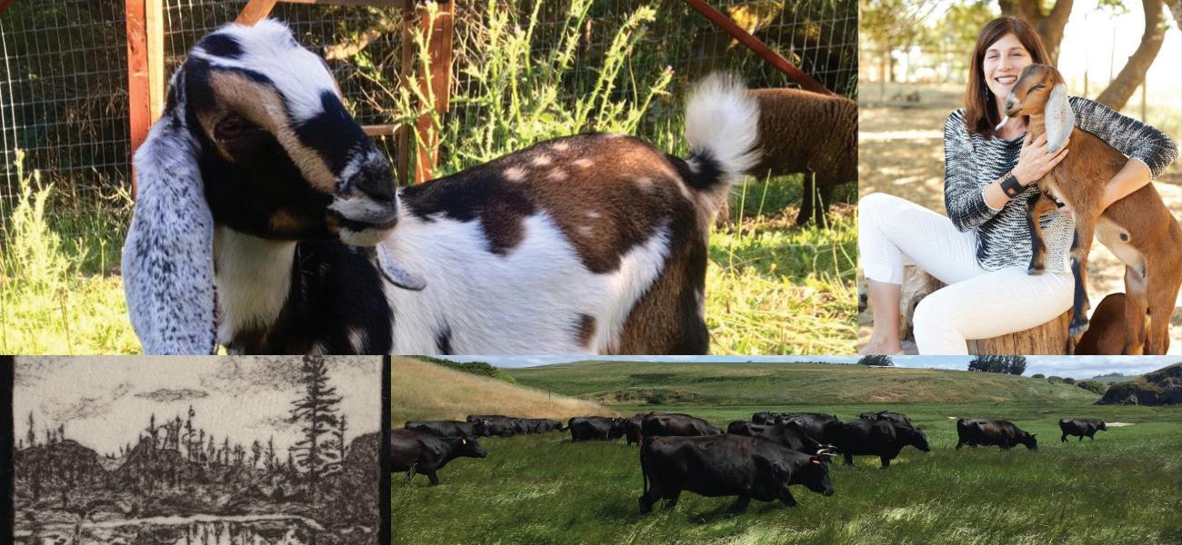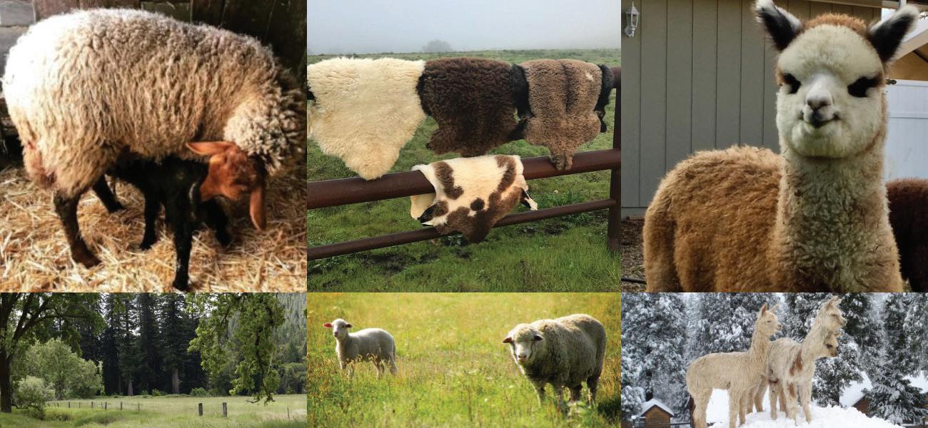 Clockwise from top left: UCCE Elkus Ranch, Hollow Bone, Integrity Alpacas & Fiber, Alpacas of El Dorado, Marin Sun Farms, New Agrarian Collective. Photos courtesy of producers.