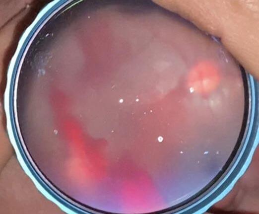 Continuamos con controles de fondo de ojo cada quince días con mejoría e involución de hemorragias, visualizando las zonas de retina avascular se realiza láser en dichas zonas
