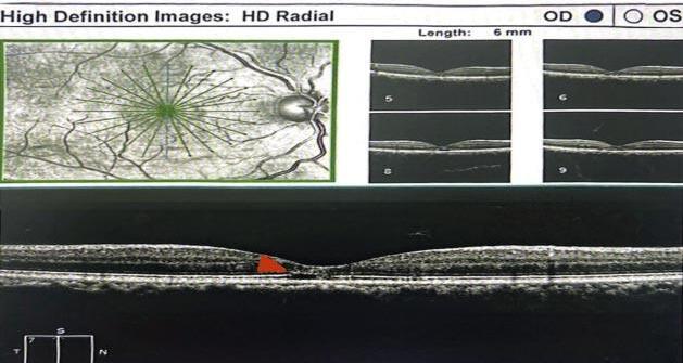 Previo a la aplicación del antiangiogénico se realiza OBI, que evidencia progresión de la retinopatía. (Fig. 3, 4 y 5).