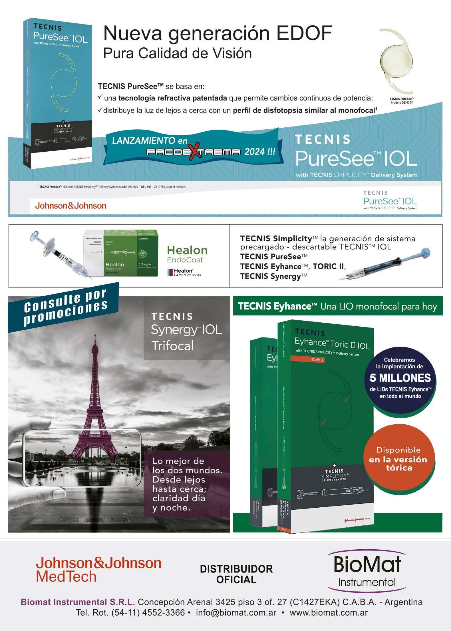 Biomat Instrumental anuncia el lanzamiento de su nuevo Lente Intraocular de Cámara Posterior T ECNIS PureSee EDOF , puramente refractivo de la plataforma TECNIS™ con tecnología de potencia continua. Diseñada para ofrecer una visión pura y predecible de alta calidad con mínimos fenómenos fóticos. La LIOTECNIS PureSee es una nueva generación de EDOF , con PURA CALIDAD DE VISION