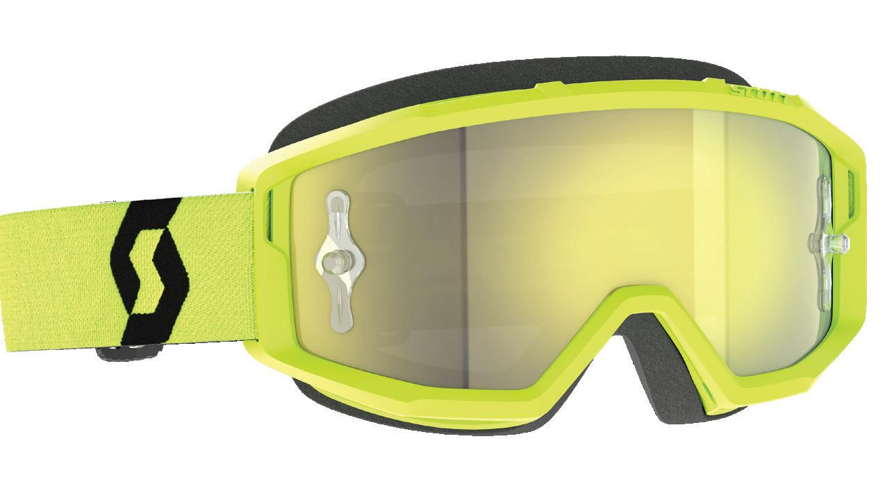 The SCOTT Prospect 2.0 AMP is the second generation of SCOTT ’s flagship motocross goggle. It features SCOTT ’s ground-breaking Quick Lens Release System which allows users to unlock the four lens locking pins instantly for a quick and easy lens change, without compromising on the industryleading safety ensured by the SCOTT Lens Lock System. The AMP model comes equipped as standard with SCOTT ’s Amplifier lens technology, which not only defends, but also enhances your vision when riding. These lenses are injection molded to provide improved definition and optical clarity, allowing you to see contours and transitions in the dirt like never before! With a fresh and modern design as well as other top performance features such as NoSweat face foam, a maximum field of vision, articulating outriggers and more, the SCOTT Prospect 2.0 AMP goggle has been fully engineered to defend your vision and give you the competitive edge when you line up at the gate on race day.