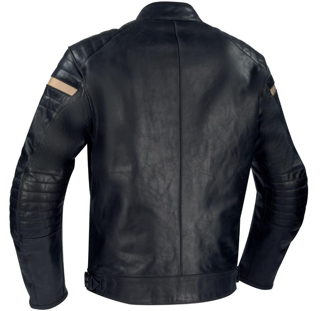 OUTER SHELL Buffalo leather. INSULATION Removable thermal lining. PROTECTORS CE approved shoulder protectors OMEGA. Adjustable CE approved elbow protectors OMEGA. Pocket for CE approved back protector. COMFORT REGULAR FIT. Fixed mesh lining. Zipped cuff fastening. 4 outer pockets. 2 inner pockets. Wallet pocket. Buckles waist fastening. Neoprene collar. Reflective element.