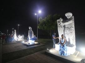 Durante treinta días los escultores dieron forma a imágenes del cholo pescador sosteniendo un pez, la albacora, una tortuga marina, un caballo de mar, el libro donde se escribió el acta de cantonización de Manta, la diosa Umiña, el pelícano, el mar y sus proezas, danza del mar y la mujer esperando al pescador.