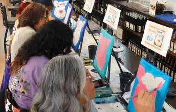 Around the room, you could see the effect: relaxed shoulders, laughter, compliments. One participant painted with vivid contrast colors and sharp lines that gave her canvas a graphic-novel energy. Another chose a soft, airy palette. At one table, neighbors—new to the area and new to paint nights— leaned in to compare ideas like they’d done it forever.