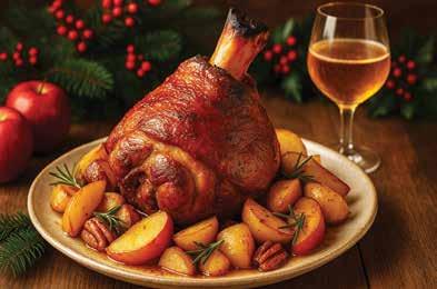 During the last 10 minutes, brush on more glaze. Let pork rest 5–10 minutes before slicing. Drizzle with remaining glaze. Pair with roasted garlic mashed potatoes, green beans almondine, and a holiday salad with pomegranate seeds and candied pecans