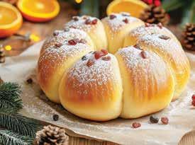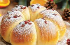 Cool slightly and dust generously with powdered sugar for a snowy effect. Sprinkle dried cranberries or raisins on top for color. Serve warm with honey butter, spiced jam, or orange marmalade. Perfect for Christmas brunch or alongside coffee on Christmas morning.