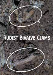 For example, during the Cretaceous Period, the Western Inland Seaway stretched from the Gulf to the Arctic, separating Eastern and Western North America. Central Texas limestone, evidence of this seaway, contains fossils of sea life, such as rudist bivalves (above)—clams that formed reefs. Sediments and shells accumulated on the ocean bottom and became rock.