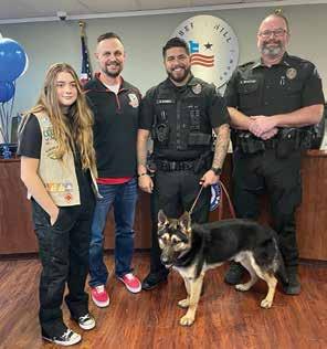 A TASK THAT WAS A TREAT EVO AT WORK EVO’s new handler and partner, K9 Officer Esteban Gomez-Sanchez, says it has always been a goal of his to work with dogs and he was pleased with Jillian's choice. “Liberty Hill is very pro law enforcement and we get a lot of support from the community, but to have someone as young as Jillian show this much drive and determination is amazing.” When on duty, EVO will be riding in style in a Tahoe outfitted with a special cage in the back of the patrol unit, but Officer Gomez-Sanchez wants to remind everyone about EVO's role. He says, “If you see Officer EVO around town please remember he is not a pet, he is a trained officer. Don’t rush up to cuddle him.”