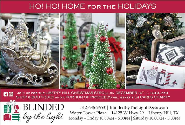 NOVEMBER 2022 Shop Small to Give Big Liberty Hill digest LIBERTY HILL CHRISTMAS STROLL Big Donors 16 Giving Thanks in Texas 22 SATURDAY, DECEMBER 10 10AM-7PM • p. 6 Uniting for Many Causes 10