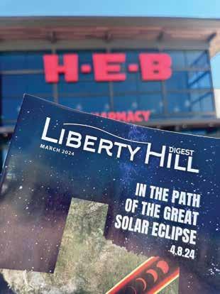 All rights reserved. Liberty Hill Digest is published monthly and mailed USPS, free of charge, to homes and businesses in Liberty Hill, TX zip codes. Mail may be sent to Liberty Hill Digest, P.O. Box 213, Jarrell, TX 76537. Email: info@lhtxdigest.com
