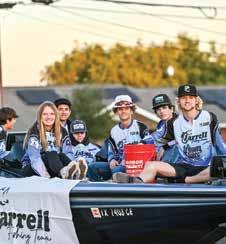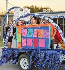 Not much gets the community of Jarrell as excited as the annual home coming parade. Families eagerly line up along the parade route as the kids wait in anticipation for mounds of candy to be collected as each float passes by. This year’s parade did not disappoint as each float was unique ly decorated and packed with kids supporting the clubs and organizations represented. The parade and the streets were a sea of blue and white as far as the eye could see. The parade concluded with a community pep ral ly at the football field and of course the lighting of the signature “JC”.