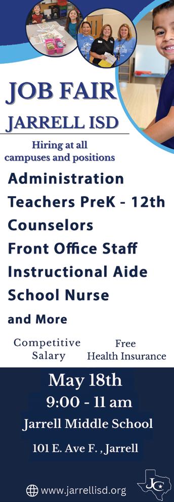 MAY 2024  MY JARRELL MONTHLY 8 12345 N. IH-35 • Jarrell (512) 746-2531
