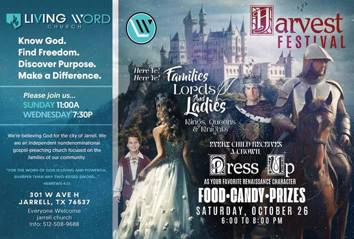 All rights reserved. MyJarrellMonthly is published monthly and mailed USPS, free of charge, to homes and businesses in the 76537 zip code. Mail may be sent to My Jarrell, P.O. Box 213, Jarrell, TX 76537. Email: info@myjarrell.com