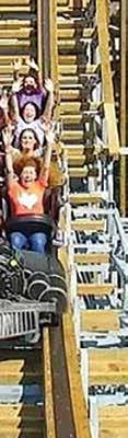 SWITCHBACK ROLLER COASTER: Debuting in 2015, Switchback holds the distinction of being the world's first and only wooden shuttle coaster. This innovative ride features a daring 104° overbanked turn and 87-degree vertical spike, propelling riders forwards and backwards. Reaching speeds up to 40 mph, Switchback offers a compact yet adrenaline-pumping experience that navigates through and around the park's historic structures.