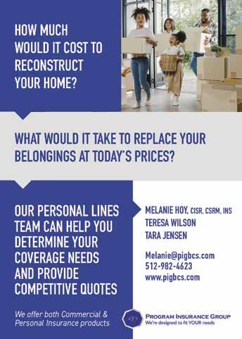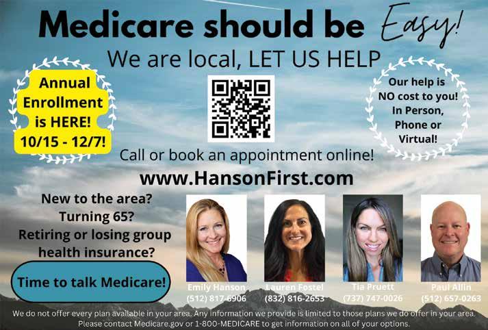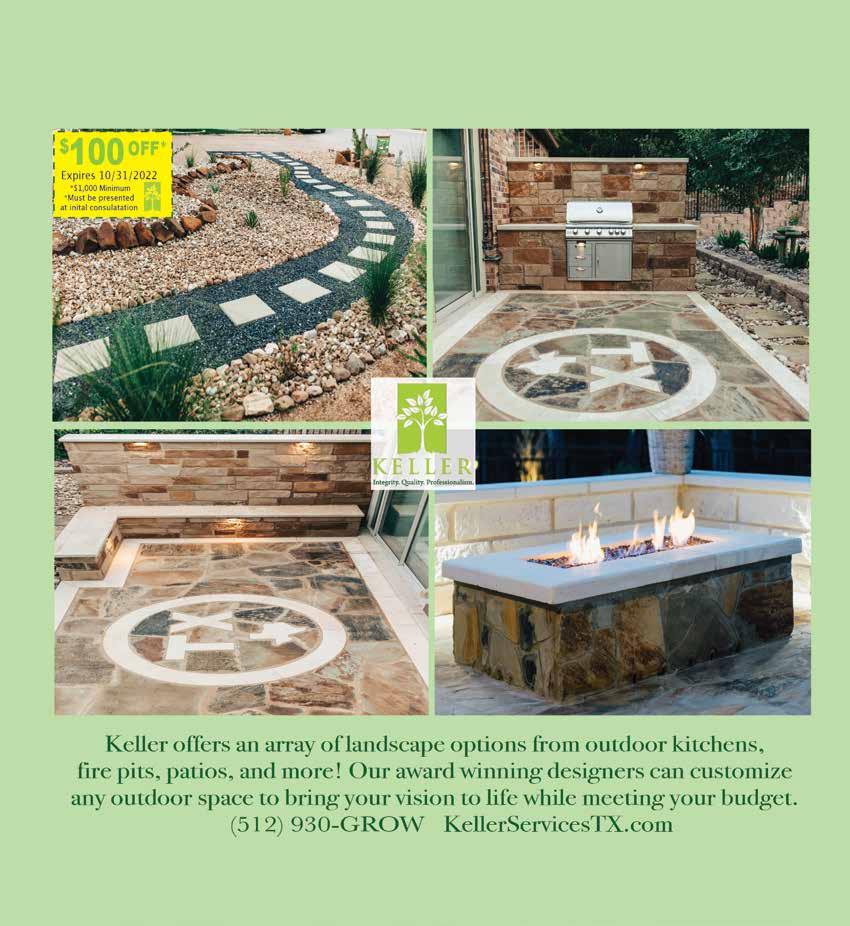 59NOVEMBER 2022 Suzanne Bergmann Sylvia Winden 512.635.4068 Scott Stout 512.997.8853 Susan Hershey 512.818.0429 Haley Waggoner 512.966.9936 Tom CatlinMargie O’Connor Kent Steenken 512.635.0439 O ce Location: 1003 S. Austin Ave. Georgetown Each o ce is independently owned and operated. LONE STAR 512.868.1771 KWLonestar.com@KWLoneStar Agents You’ve Seen Our Signs
