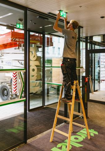 Fiegl+Spielberger installiert. Die Photovoltaik-Fassadenanlage wurde mit Wechselrichtern und Leistungsoptimierern ausgestattet. Abgerundet wird die technische Infrastruktur durch eine moderne Brandmeldeanlage. Für die Umsetzung dieser anspruchsvollen technischen Installationen waren rund 38.000 Arbeitsstunden erforderlich. Über 23