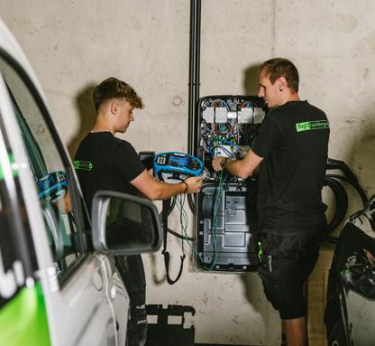 Technische Ausstattung durch Fiegl+Spielberger Fiegl+Spielberger war maßgeblich an der technischen Ausstattung des Gebäudes beteiligt und realisierte umfassende Anlagen, darunter Elektroinstallatio nen mit KNX-System inklusive Visuali sierungen, netzunabhängiger Not- und Sicherheitsbeleuchtung, Energiemoni toring, SAT-Anlage, Objektfunkanlage, USV-Anlage sowie E-Ladestationen und Vorbereitungsarbeiten für eine mobile Einspeisung im Blackout-Fall. Zusätz lich wurden Video- und Alarmanlage, Schrankenanlage sowie die komplette Photovoltaikanlage auf dem Dach von