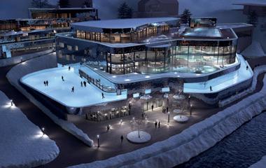 kommen in den drei Restaurants und Bars voll auf ihre Kosten. Die Eislaufbahn, welche spektakulär rund ums Gebäude führt, auf einer Fläche von 1.300 Quadratmetern und der Fitnessbereich, bestückt mit modernsten Trainingsgeräten, warten mit einem eindrucksvollen Blick auf die